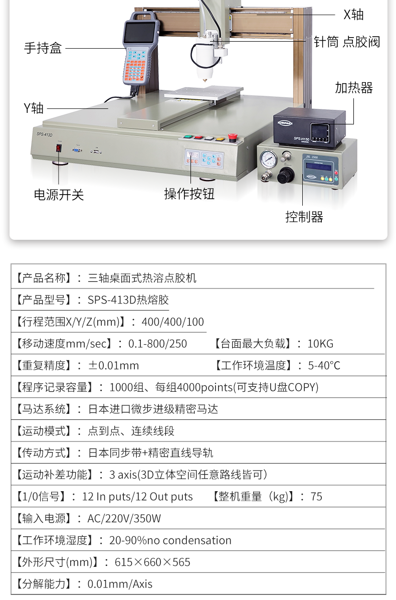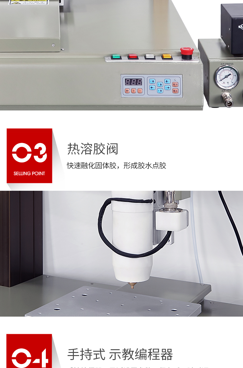 主頁  > 產品展示  > 自動點膠機  > 桌面式點膠機  > PUR熱熔膠三軸桌面高精度點膠機