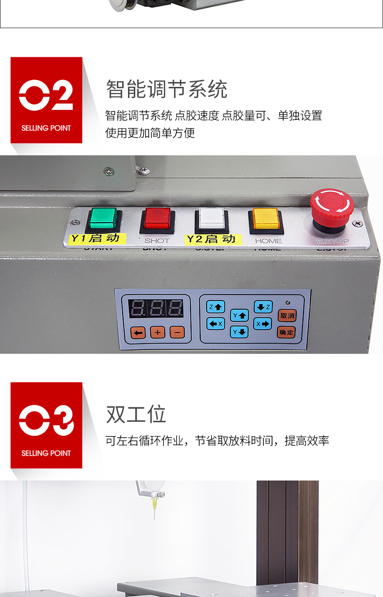 4. 機(jī)臺上帶有對針頭的控制按鍵,不需外接教導(dǎo)器,比同類產(chǎn)品調(diào)試 更加方便。