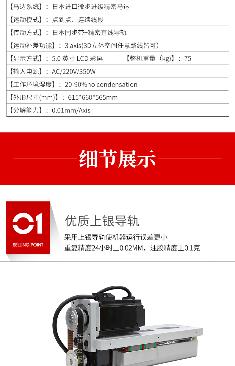 1. 可替代人工的特定點膠作業(yè),實現(xiàn)機(jī)械化生產(chǎn)。